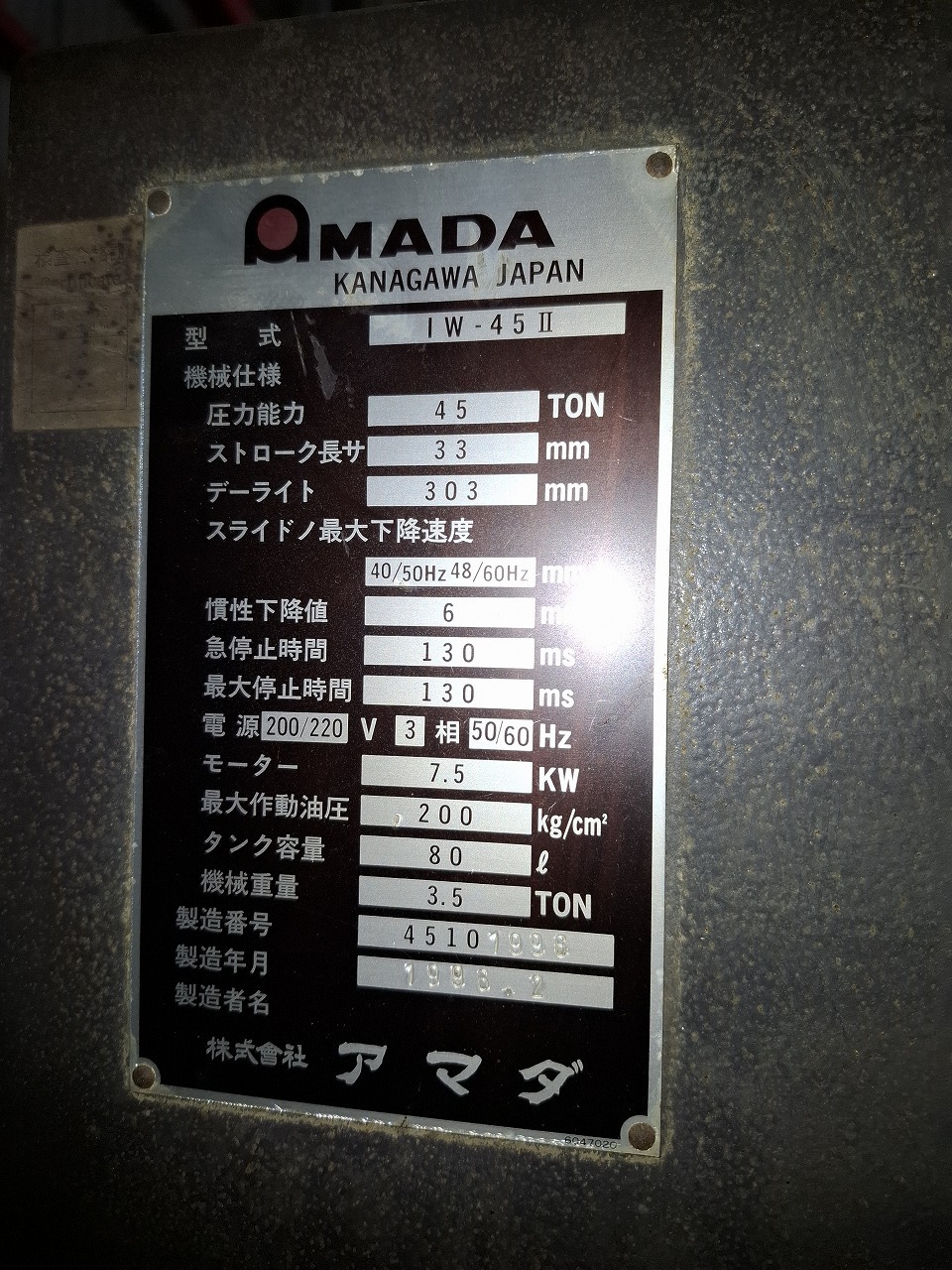 | メーカー | アマダ製 |