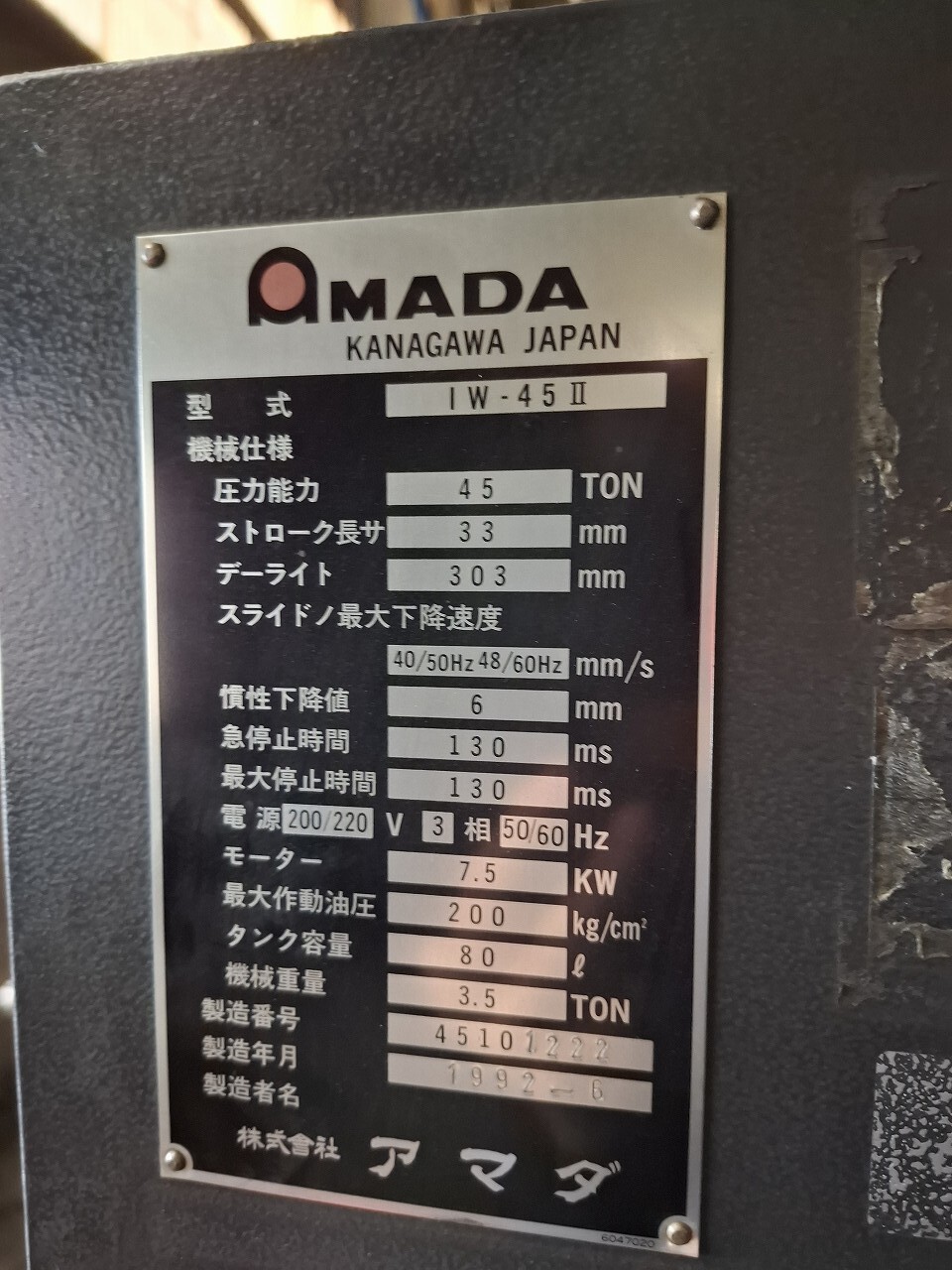 アマダ製 アイアンワーカー(IW-45II/1992年式)