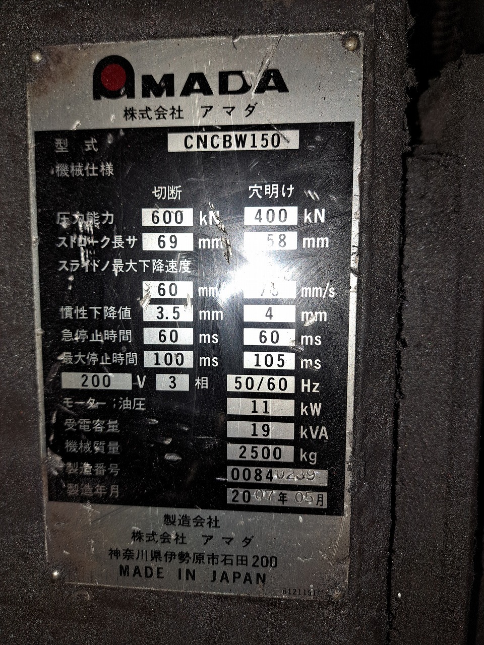アマダ製 CNCビームワーカー(CNCBW150/2007年式)