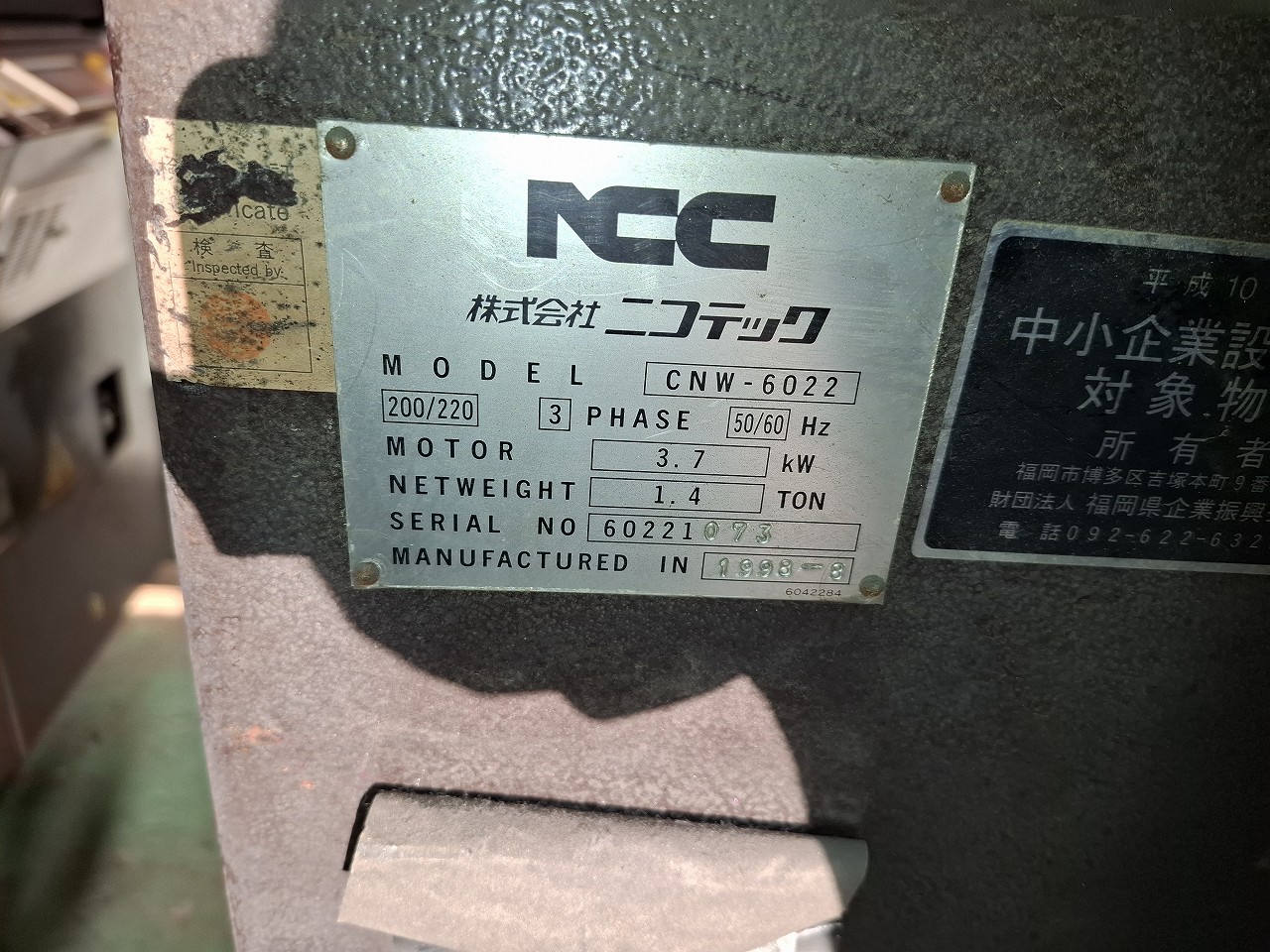 NCC製 コーナーシャー(CNW-6022/1998年式)
