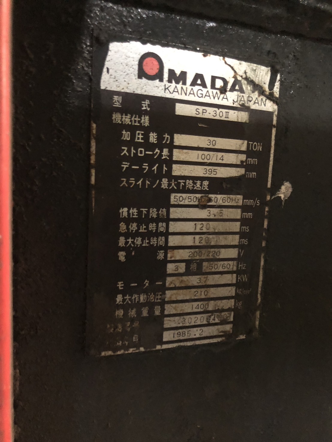 アマダ製 セットプレス(SP-30Ⅱ/1986年式)