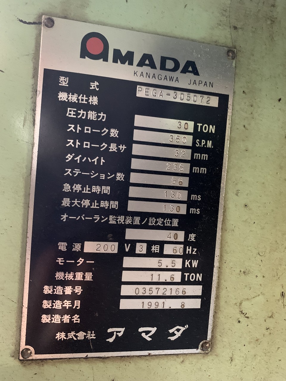 アマダ製 タレットパンチプレス(PEGA357/1991年式)