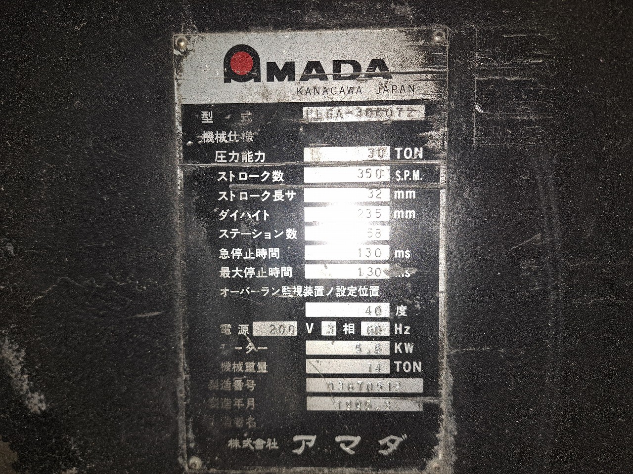 アマダ製 タレットパンチプレス(PEGA367/1995年式)