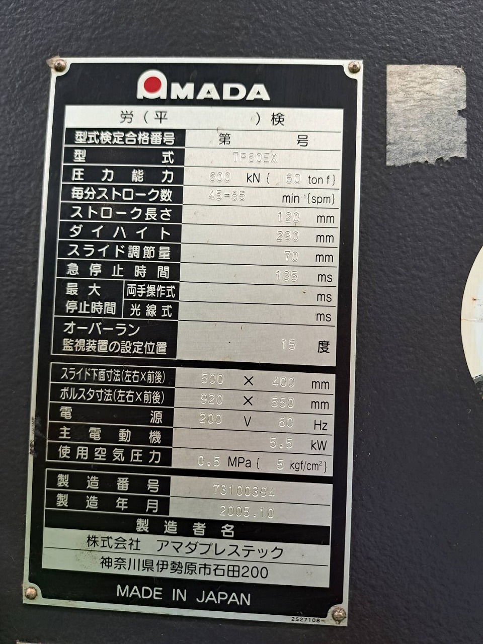 メーカー | アマダ製 |