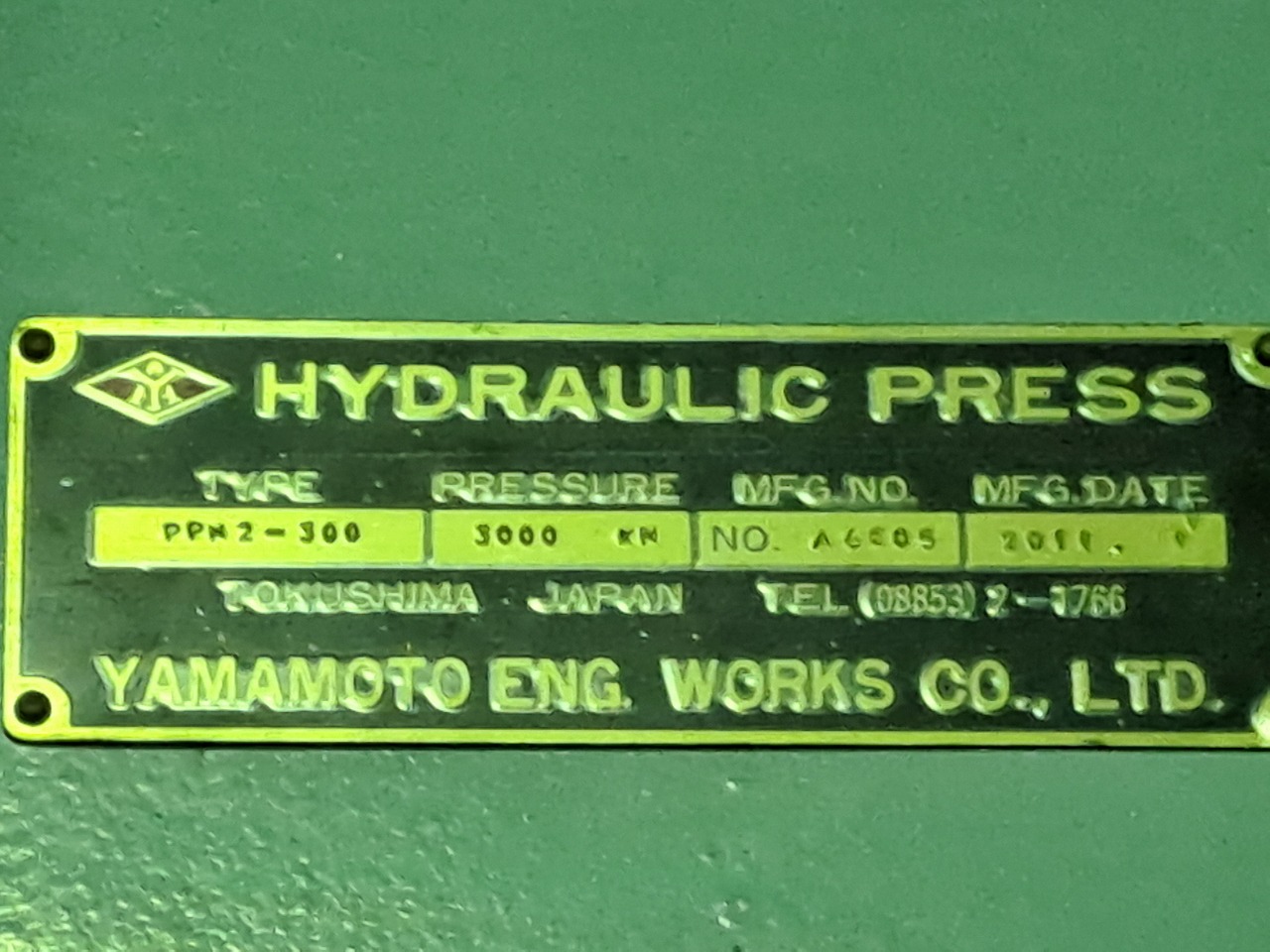 山本製 300T 油圧プレス(PPN2-300/2011年式)