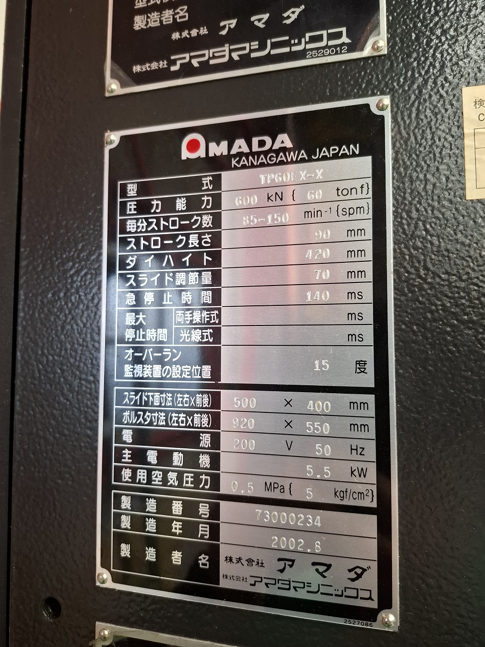 | メーカー | アマダ製 |