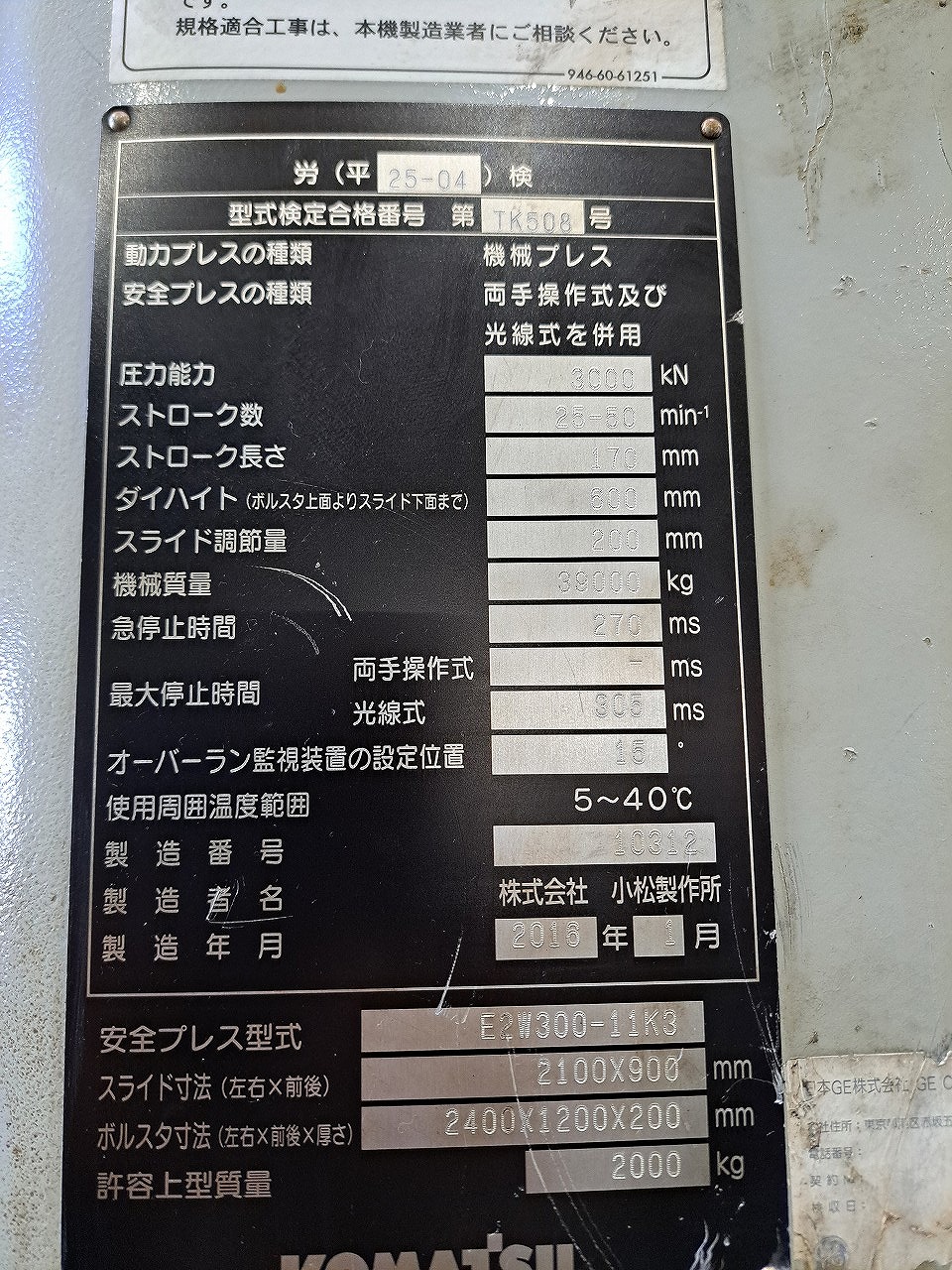 コマツ製 300t門型サーボプレス(2016年式)