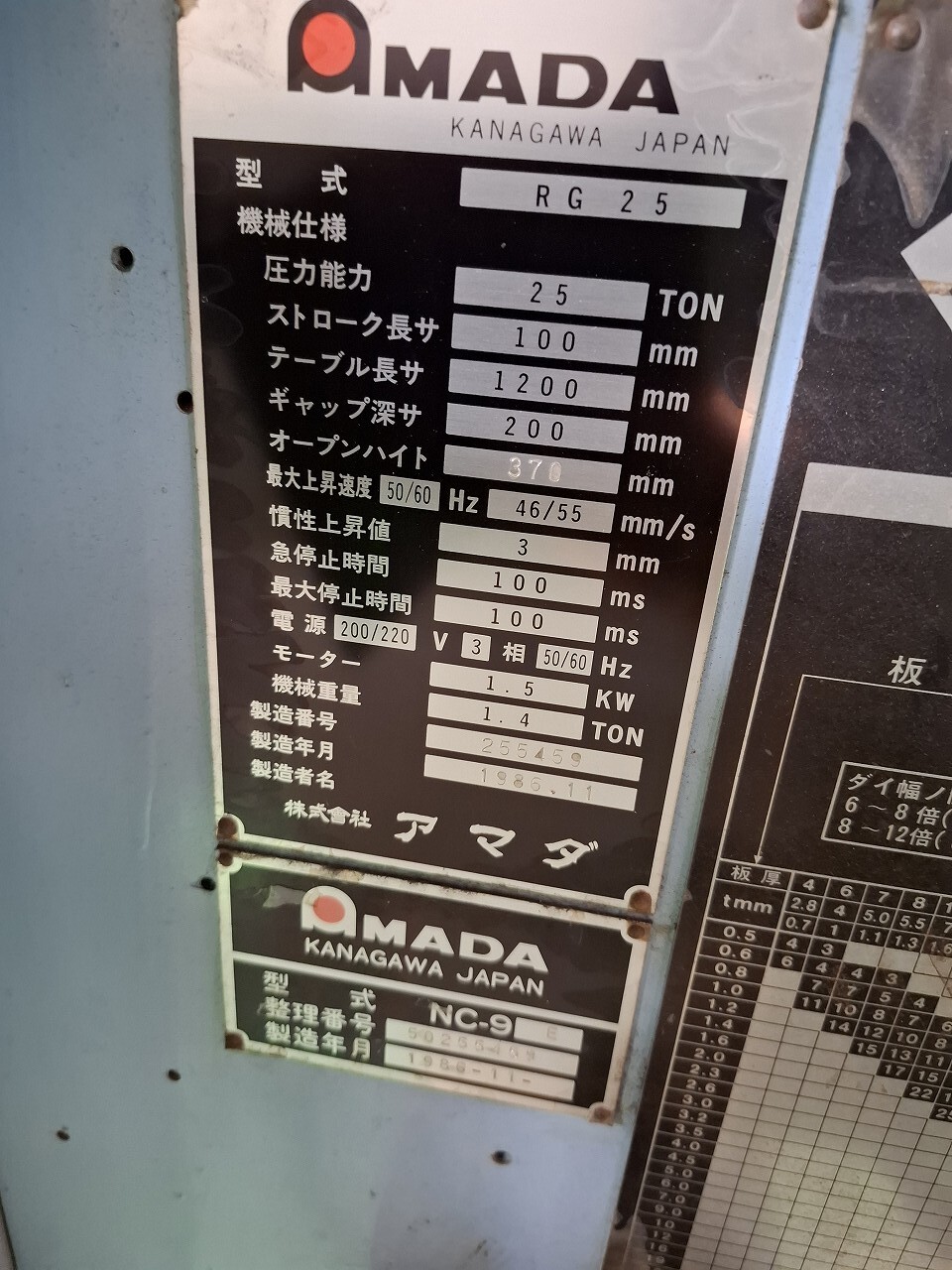 アマダ製 プレスブレーキ(RG25/1986年式)
