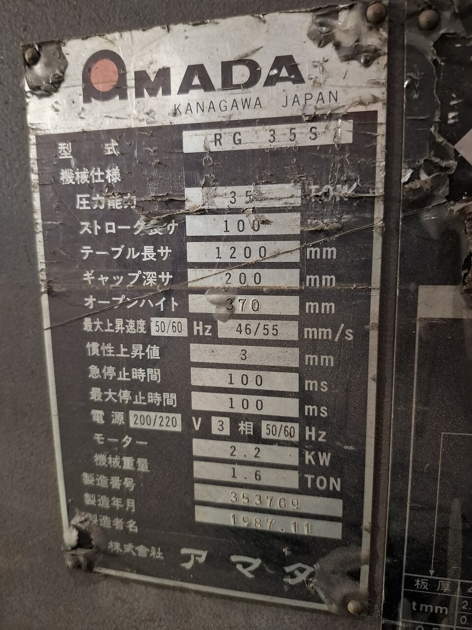 アマダ製 プレスブレーキ(RG-35S/1987年式)