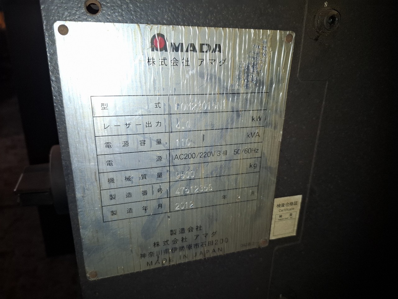 アマダ製 レーザー加工機(FOM23015NT/2012年式)