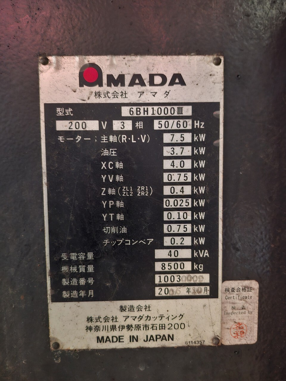 アマダ製 H型鋼穴明加工機(6BH1000Ⅲ/2006年式)