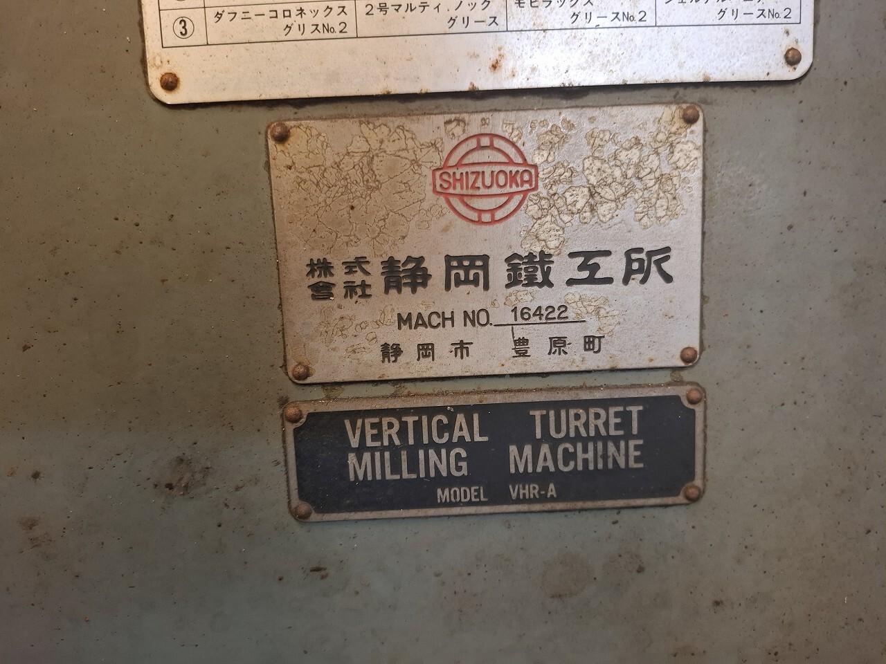 静岡鐵工所製 フライス盤(VHR-A/1985年式)