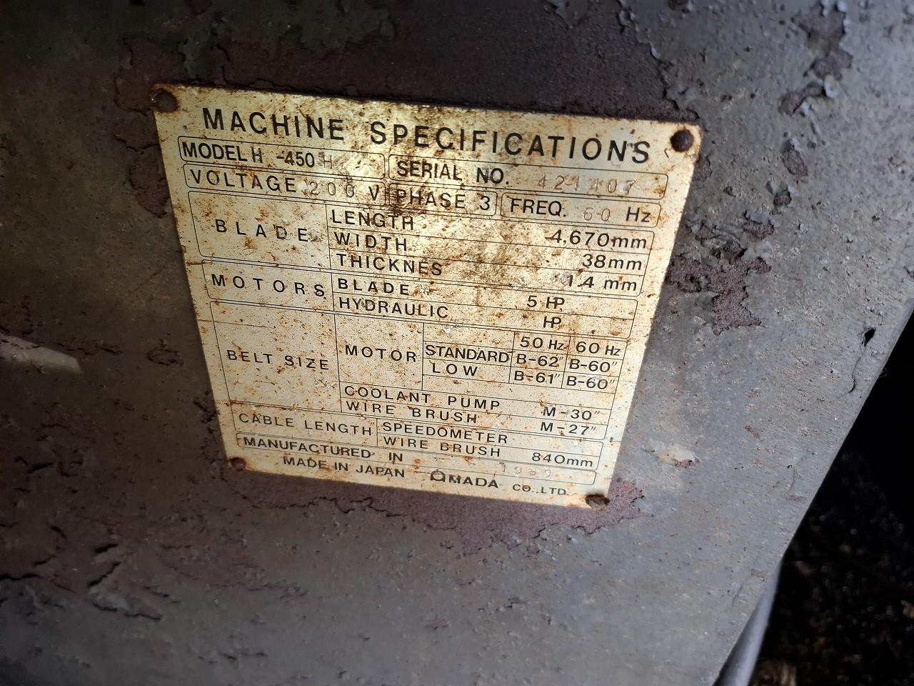 商品名 | アマダ製 バンドソー |