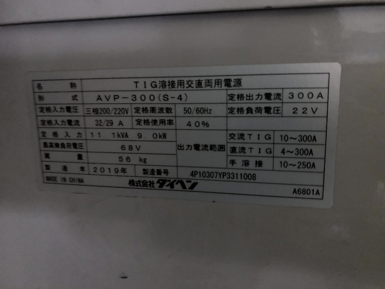 ダイヘン製 TIG溶接機(AVP-300(S-4)/2019年式)