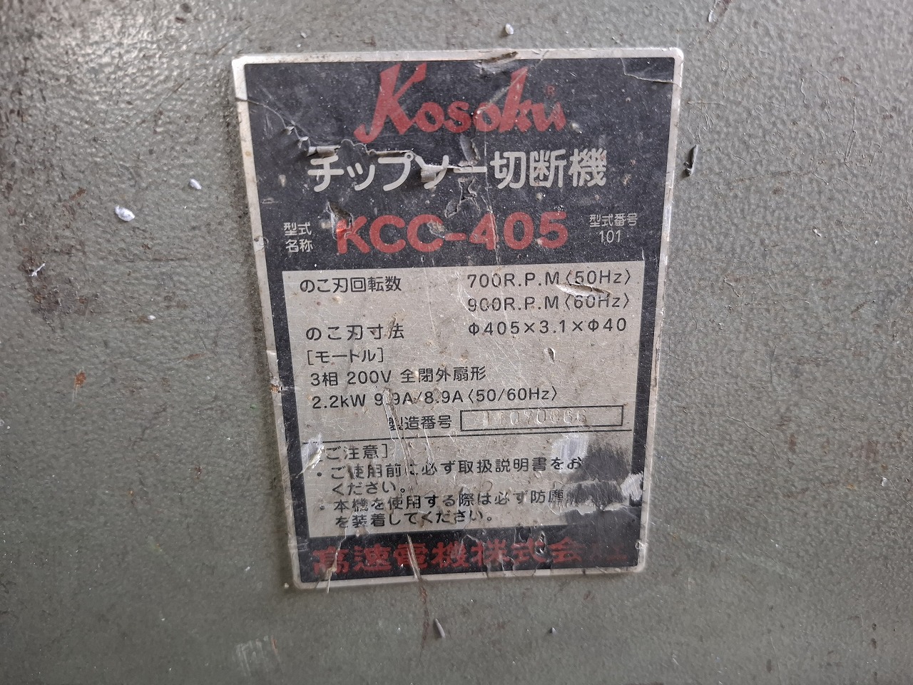 高速電機製 チップソー切断機(KCC-405/1999年式)