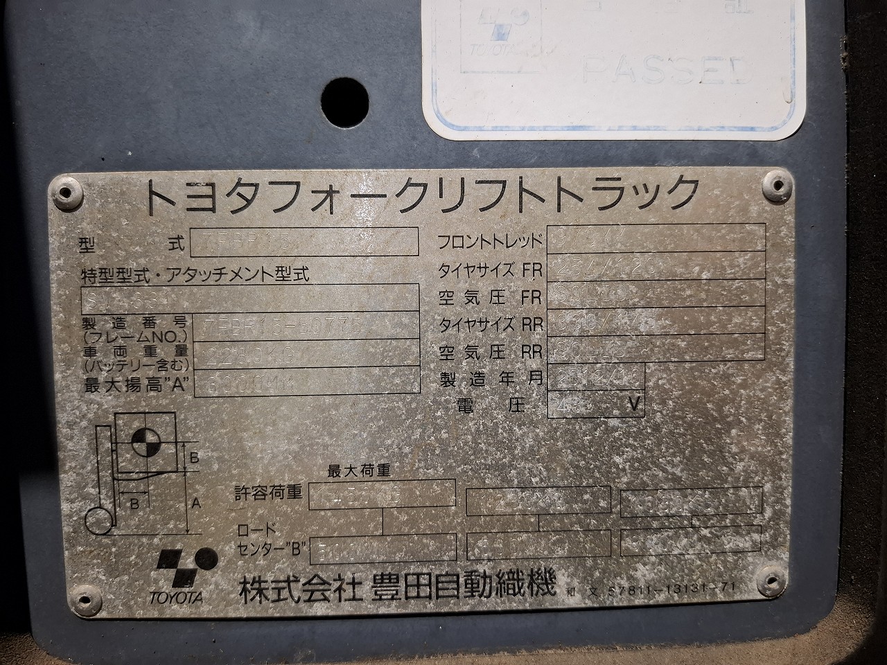 豊田自動織機製 1.5tプラッター(7FBR15/2012年式)