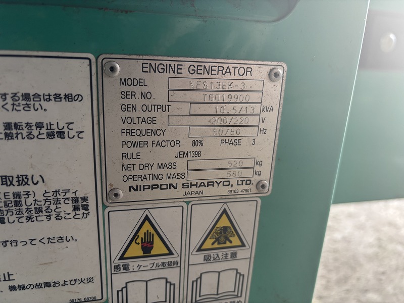 日本車両製 エンジン発電機(NES13EK-3)